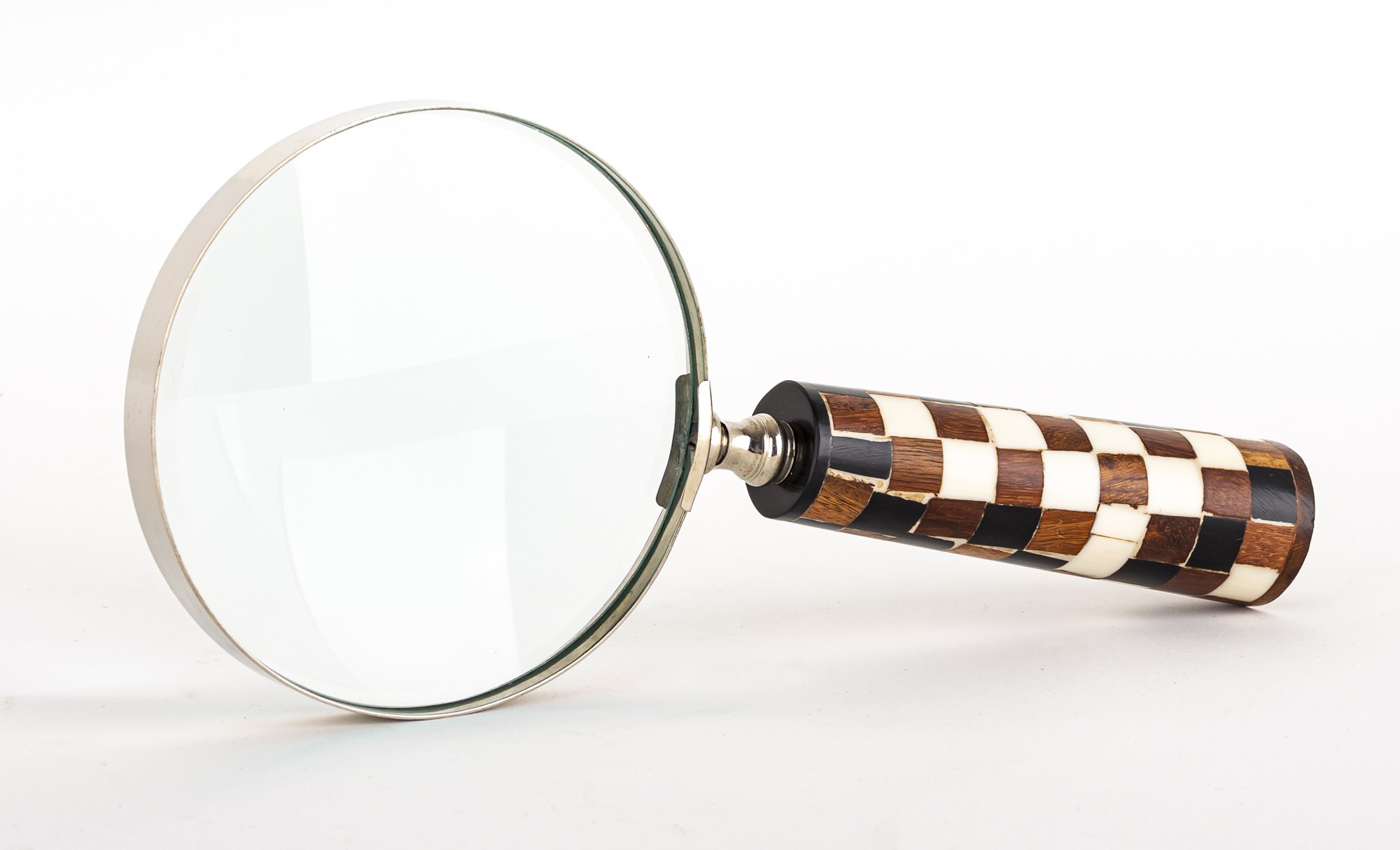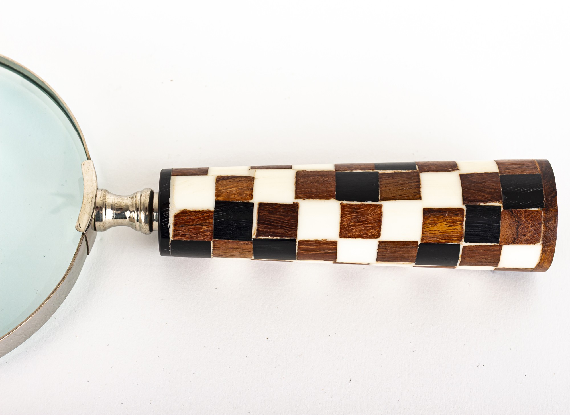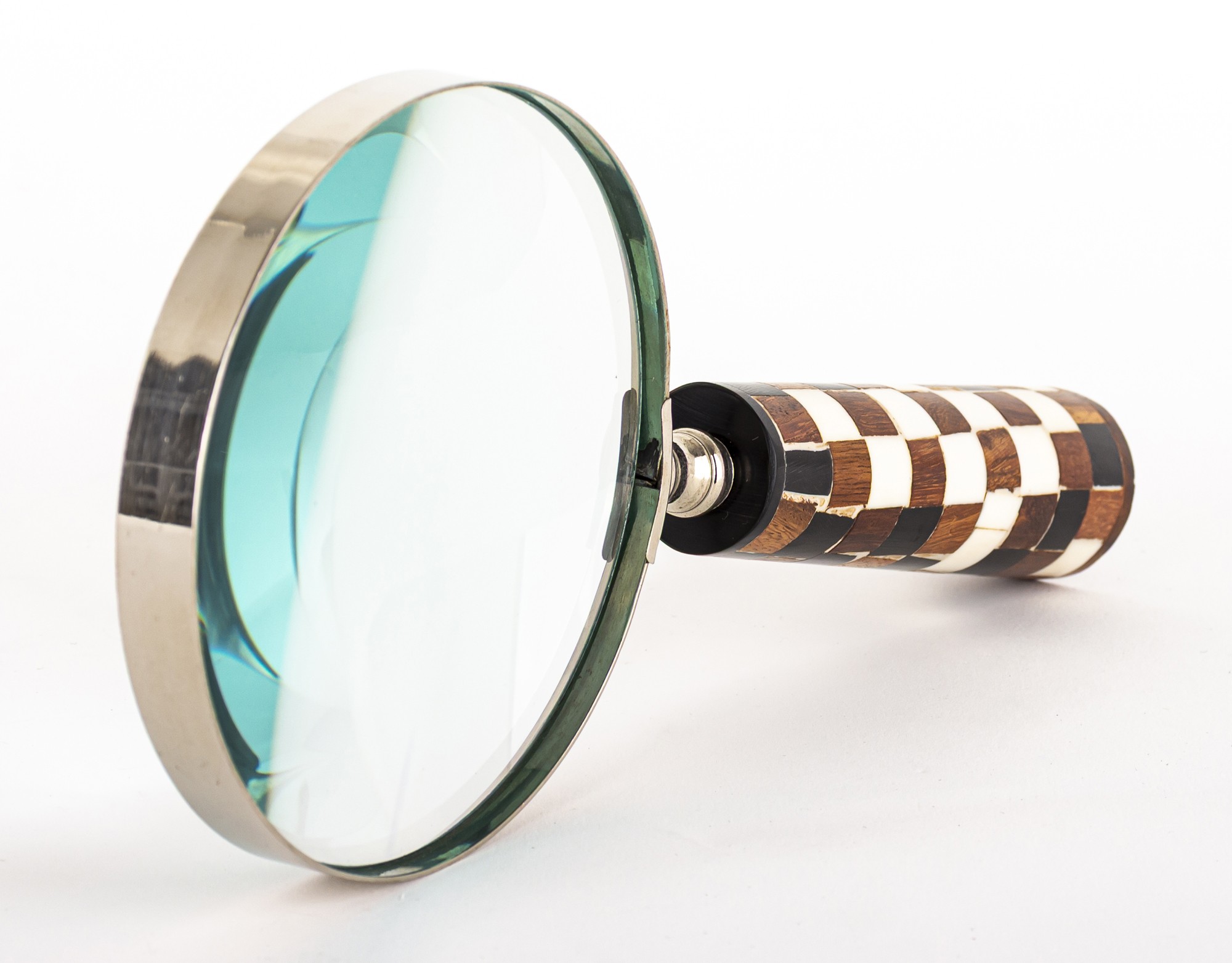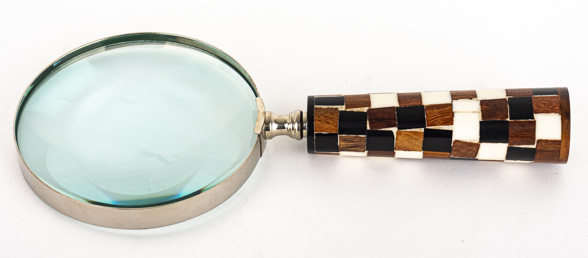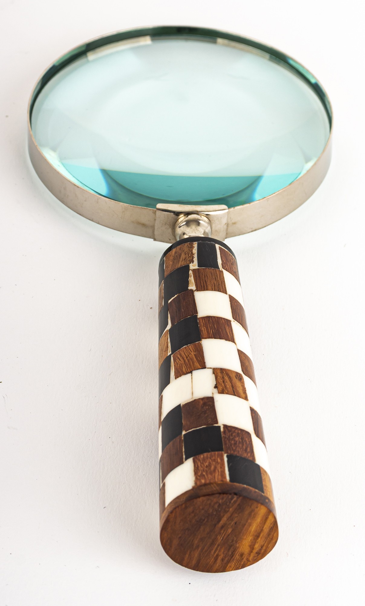 Materiał: aluminium, mosiądz, szkło, drewno mango