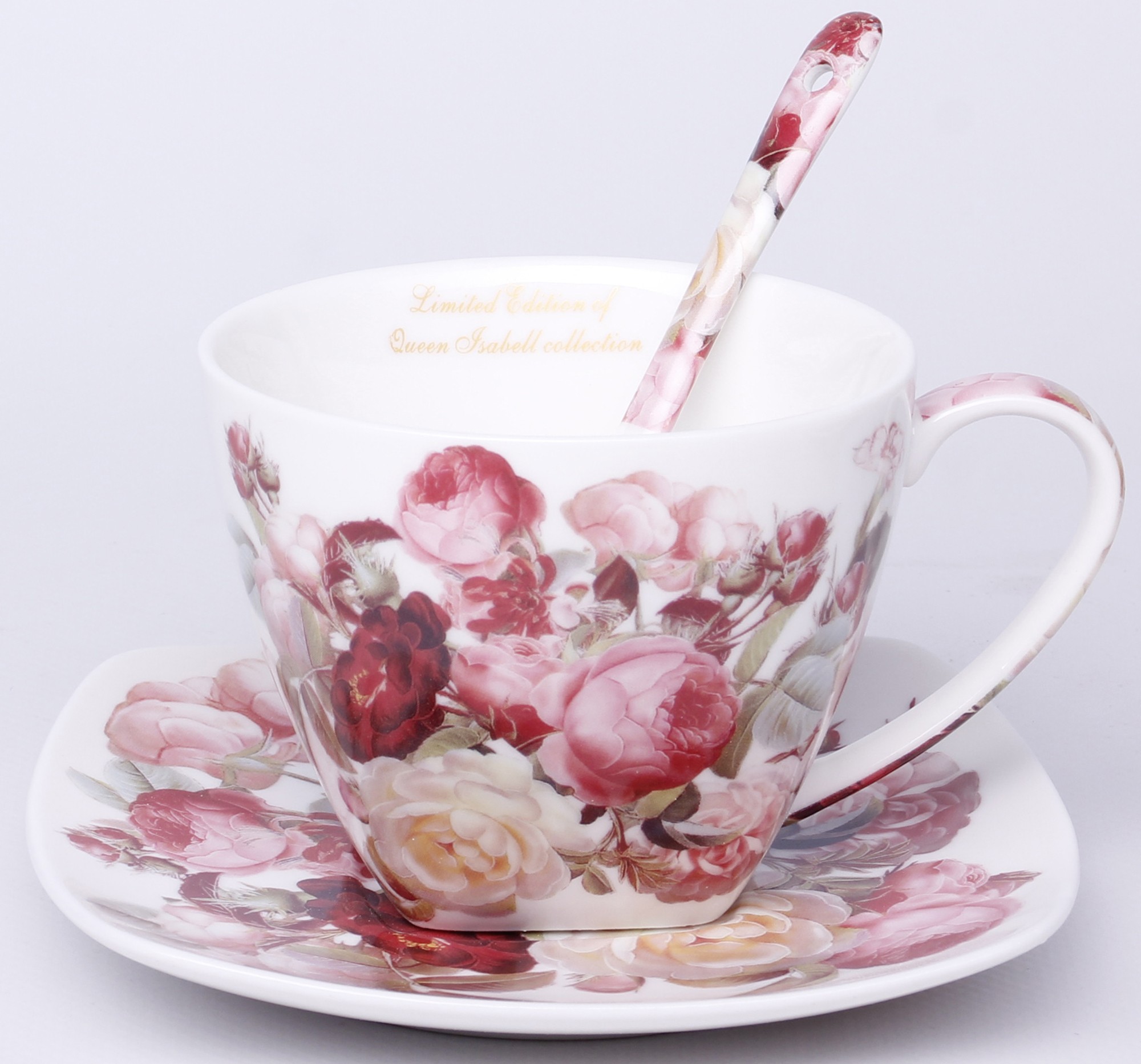 Rozmiar: filiżanka 7x12x9 podstawka 2×13,5×13,5 łyżeczka 13