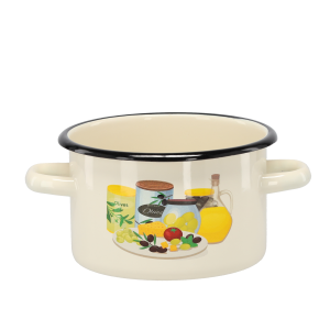 GARNEK EMALIOWANY 2 L 16 CM KREMOWY OLIWKA *7442