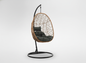 FOTEL WISZĄCY NATURALNY, PODUSZKA – CIEMNOSZARA, RAMA – CZARNA 115 X 90 X 67 CM