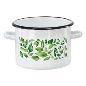 RONDEL EMALIOWANY Z DWOMA USZAMI 1,5 L 16 CM KREMOWY LIŚCIE *2327
