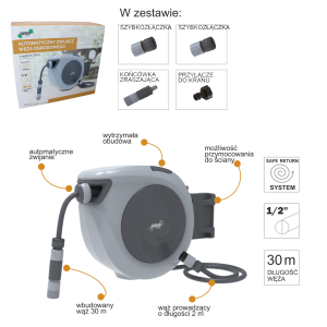 AUTOMATYCZNY ZWIJACZ WĘŻA OGRODOWEGO Z WĘŻEM – 30 M