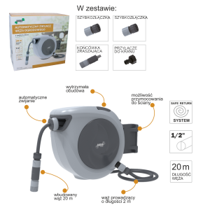 AUTOMATYCZNY ZWIJACZ WĘŻA OGRODOWEGO Z WĘŻEM – 20 M